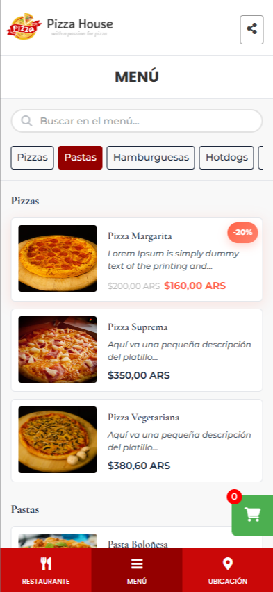 Tus clientes acceden al menú digital desde un link con un sistema de catálogo y pedidos por categoría.